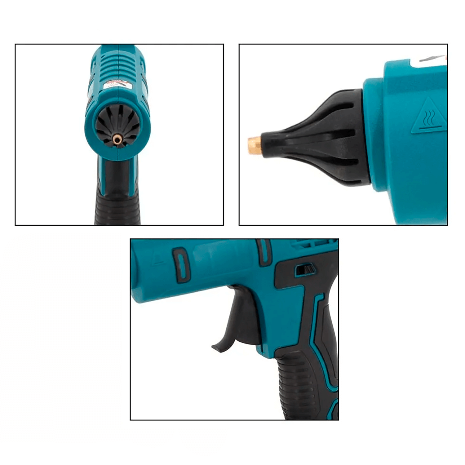 Легкий и портативный аккумуляторный клеевой пистолет имеет беспроводную конструкцию, компактный размер, удобен в использовании. Идет в комплекте с 10 клеевыми стиками и 1 АКБ мощностью 24В, что позволяет сразу же начать работу.